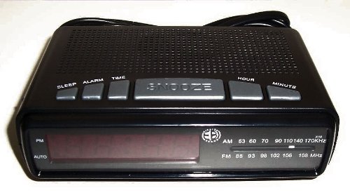Electro Brand AM/FM black clock radio (battery back-up) ~~ 2 function Sleep or snooze ~~ Easy-to-read digital LED lighted clock display ~~ Requires one 9 volt battery (not included) ~~ Wake -up to radio or alarm. Read more...