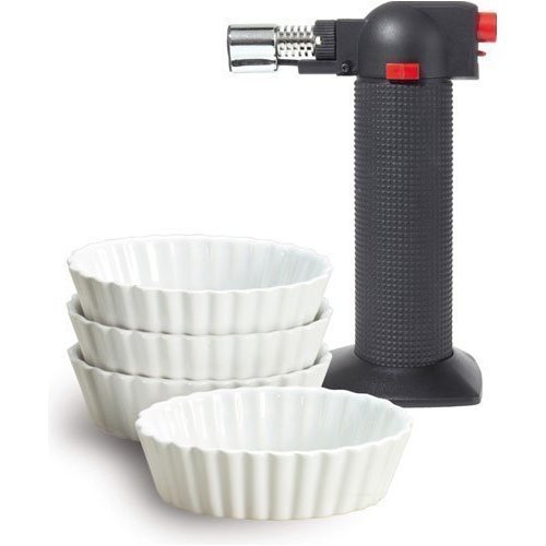 With innovative designs and contemporary finishes, Oggi’s kitchen and bath wares are truly tomorrow’s housewares .Oggi’s 5 Piece Crème Brulee Set is no exception. Prepare restaurant quality Creme Brulee in the comfort of your own kitchen. Set includes 4 oval ramekin dishes, 1 Micro culinary torch (butane not included), recipe and instructions. Torch features an air adjustable ring which makes controlling the flame intensity quick and easy. Torch is also great for cheese and meringue. Read more...