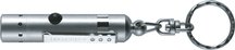 German-engineered in sleek anodized metal casing with gold-plated contacts, the shockproof light resists water damage for greater durability. Refractor tubes reflect light to shine one focused, broad beam for enhanced vision. The light-emitting diode technology burns cool for efficiency and safety. A tie clip attaches to shirt pockets or belt loops, while the light also easily slips onto key chains. A simple push button turns the light on and off. The flashlight comes with three AG13 micro alkaline cell batteries to power the light for 100 hours. Replacement batteries can be purchased at camera supply shops, jewelers, and all-purpose chain stores. This product is covered by a lifetime guarantee. The light measures 2-1/4 inches long and weighs 1/5 a pound upon shipping.--Jessica Reuling